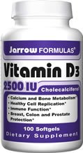 - Jarrow Vitamin D3, 2500 IU, 100 sftgels